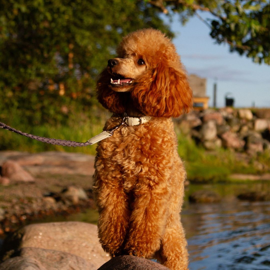 Available in two sophisticated colours – Moon, an elegant grey and Petal, a soft dusty pink – this collar makes your dog stand out in the most refined way.
